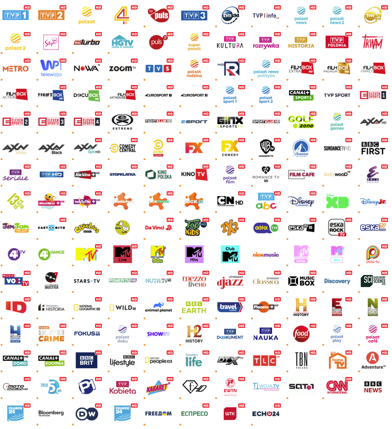 Dostępne jest 173 kanałów w tym 127 poza domem.